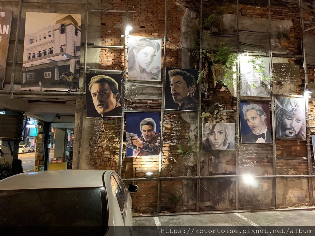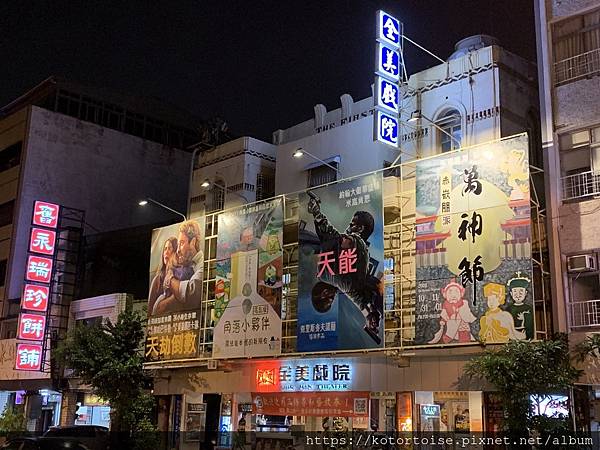 夜晚,手繪電影海報看板在台南街上閃閃發亮