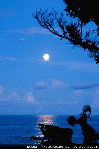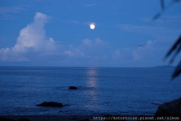 圓月已迫不急待升起,在海面上照出一束皎潔的通道