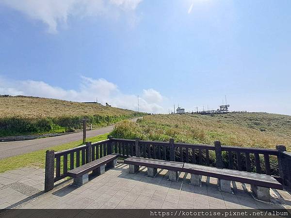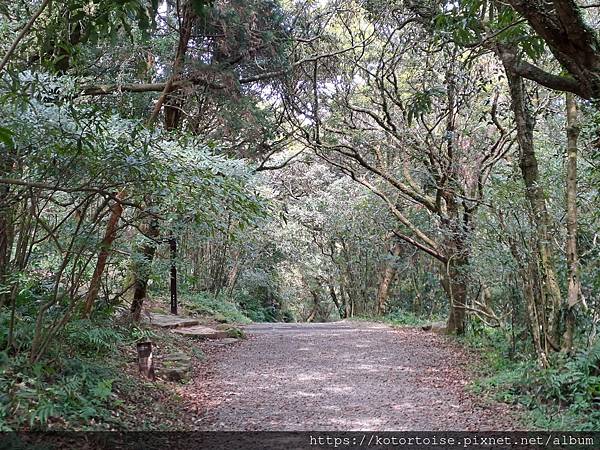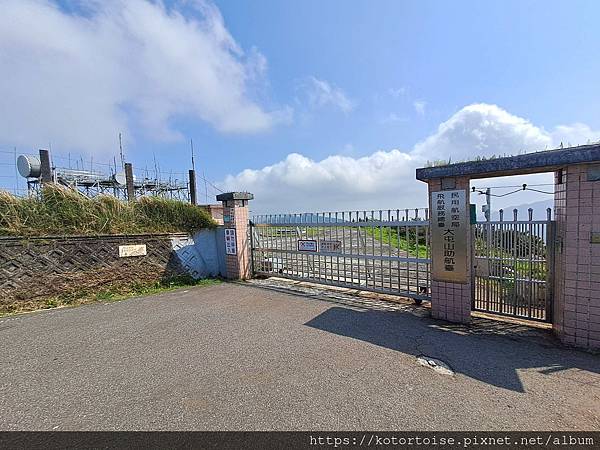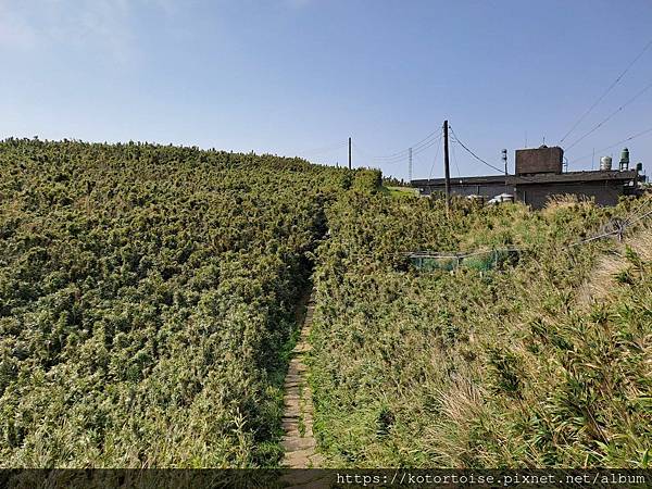 步道在展望涼亭後接上車道,再走一會,抵達大屯山助航台