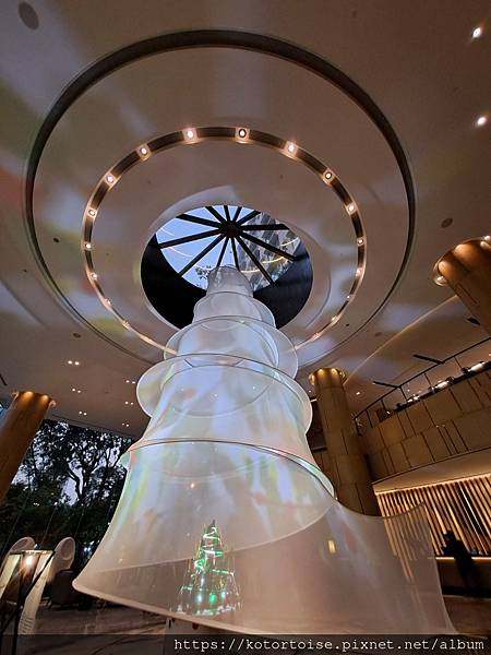 進入酒店氣派的大廳,因為聖誕佳節將至,擺上了巨大的聖誕樹投影造景