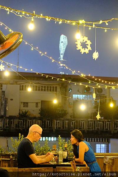 位在頂樓的餐廳氣氛絕佳,遠方的地標摩天大樓燈火相伴