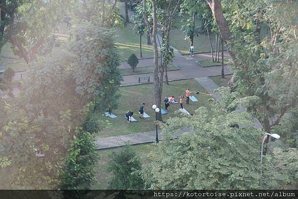 ▲ 清晨散步回來時,遇到一群婆婆媽媽從揹著瑜珈墊從酒店走出來,原來是到公園一起運動